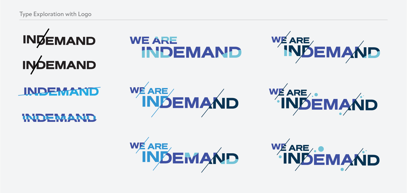 Typographic exploration of the logo, integrated into a design concept for an in-house wall art backdrop. In Demand is an American cable television service which provides video on demand services, including pay-per-view.